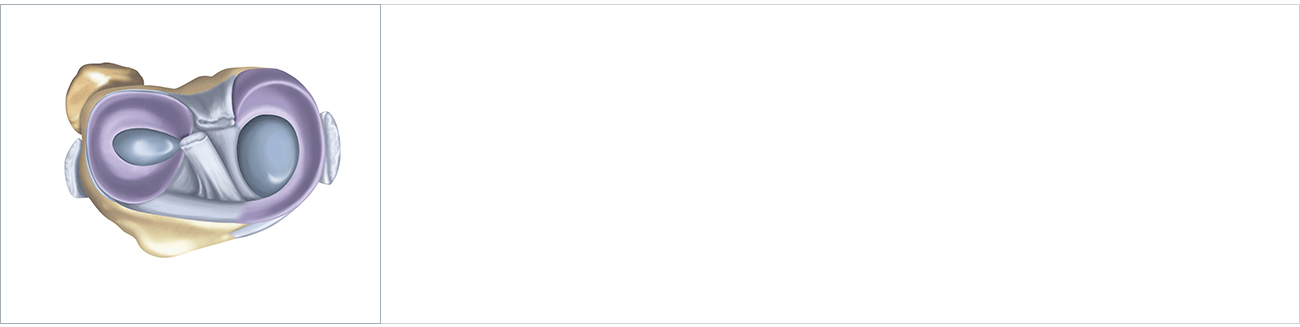 무릎 관절 안쪽과 바깥쪽에 초승달 모양의 연골 2개가 한 쌍을 이루고 있어 무릎에 가해지는 충격을