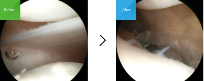 관절내시경을 이용하여 커져 있는 추벽을 제거합니다.