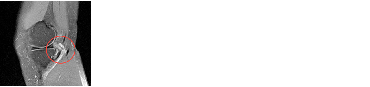 ▶ 갑작스런 운동이나 충격으로 힘줄 주변에 물혹이 생긴 상태 (MRI)