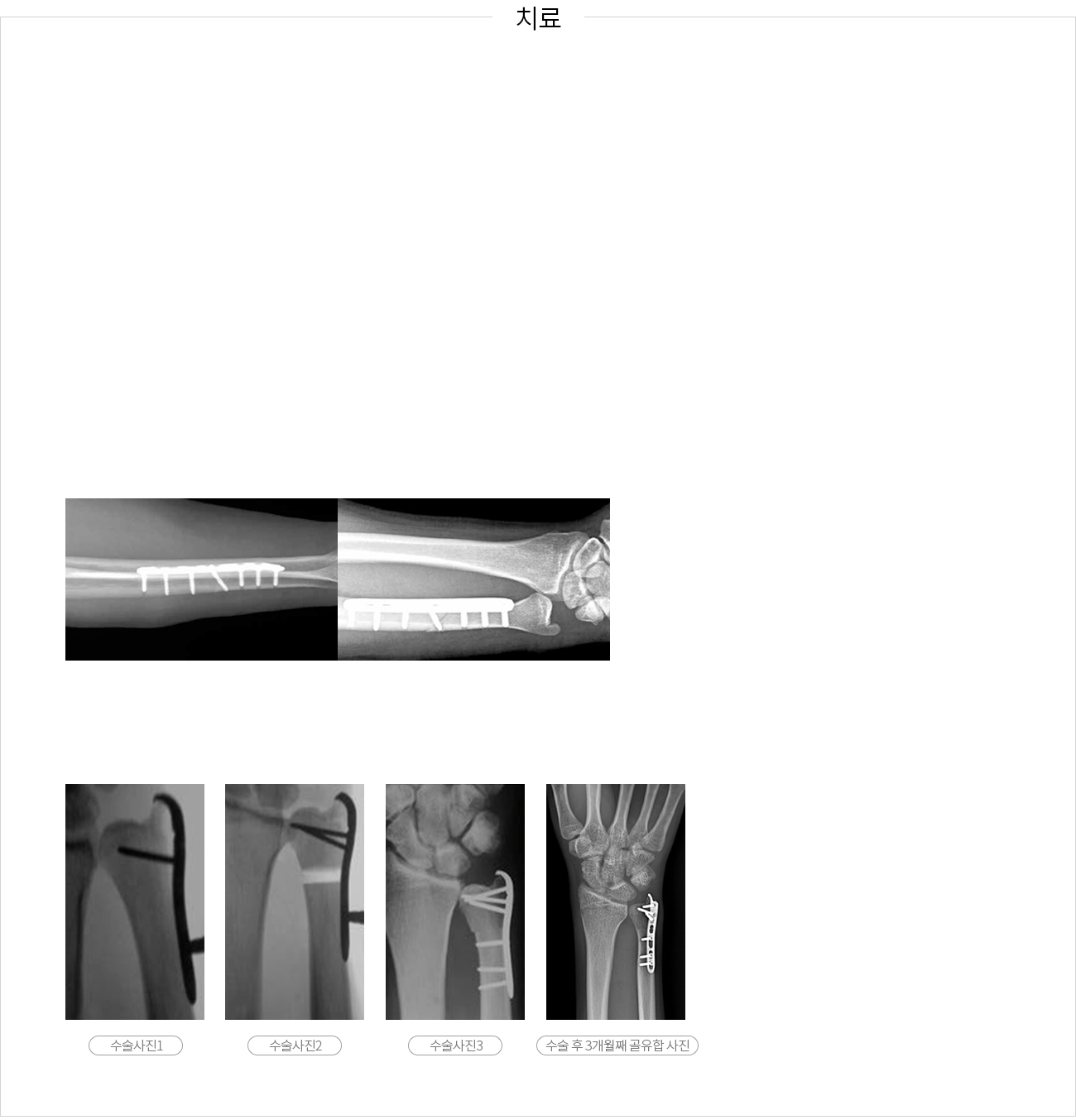통증이 남고 재발하는 경우가 흔합니다. 이때에는 금속판을 이용한 척골 단축술을 시행하여 많은 환자에서 좋은 결과를 보이고 있습니다.