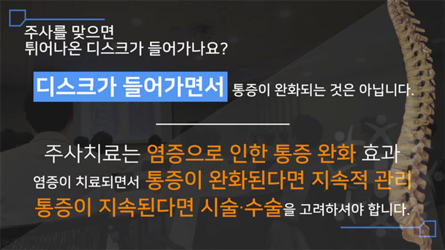 주사를 맞으면 튀어나온 디스크가 다시 들어가나요?