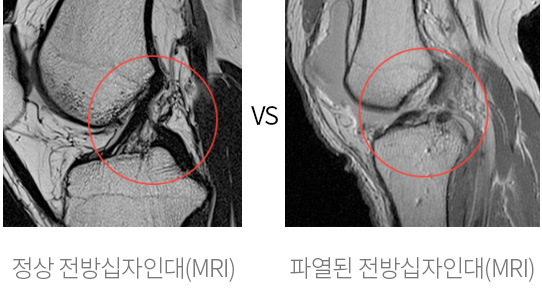 전방십자인대 파열은 갑작스러운 방향 전환이나 외부 충격으로 발생하는데 ‘퍽’소리와 함께 무릎이 덜렁거리는 느낌이 들 게 됩니다.