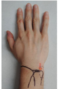 (손목을 새끼 손가락 쪽으로 꺾는 동작)시 통증이 심해집니다.