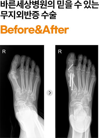 바른세상병원은 최소침습 무지외반 교정술(MICA 또는 MITA)을 시행합니다.