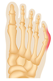 연부조직 자체가 커져서 증상이 생기기도 하지만 주로 발의 외측 볼(다섯 번째 중족지 관절)의 뼈가 외측으로 튀어나와서 생깁니다. 발 볼이 좁은 신발을 신거나 발 볼이 넓은 사람에게 더 심하게 나타납니다.