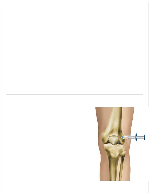 ※히알루론산 주사치료는 시간이 경과하면서 통증 완화, 관절 운동 시 불편감 해소 등의 효과가 점점 나타나게 됩니다. 통증완화 효과는 대개 6개월 정도 지속됩니다.