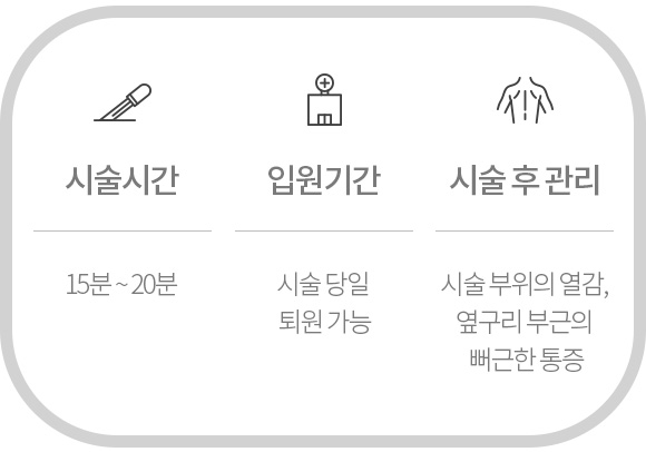 시술 후 1시간 정도의 안정을 취한 후 보행이 가능합니다.