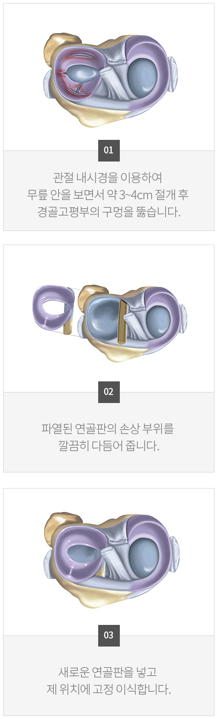 관절 내시경을 이용한 최소 절개법으로 회복이 빠릅니다.