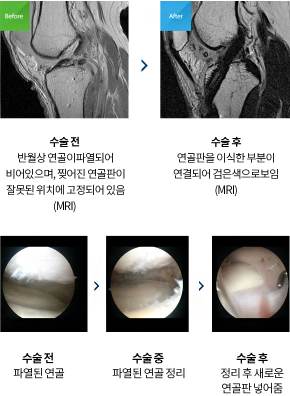 정상의 연골판이 이식되므로 인공관절 수술 등을