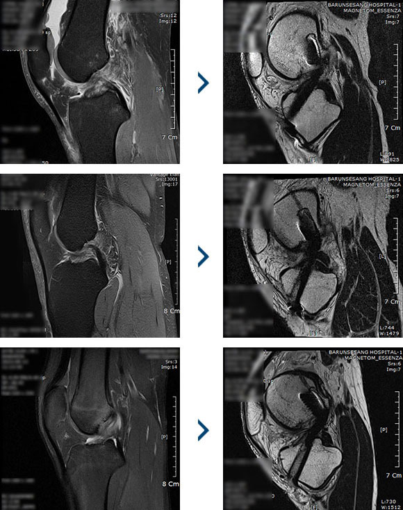 바른세상병원은 전방십자인대 재건술과 관련된 연구를 십여년간 지속하여 수술법을 개발해왔고, ‘잔존 인대 보존술식’과 ‘터널확장 방지 수술법’을 시행하고 있습니다. 잔존 조직을 최대한 보전해 이식건을 부착하는 재건술을 시행할 경우, 수술 후 무릎 관절의 고유 감각 기능을 유지할 수 있어 위치 감각 회복과 이식건의 자기 인대화 과정이 용이하기 때문에 안정성 향상은 물론 빠른 재활에 도움을 줄 수 있습니다.