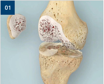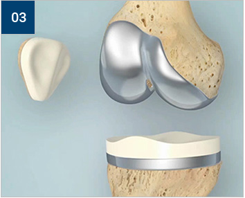 관절연골 및 뼈부분을 제거하고 인공관절로 교체하는 방법입니다. 필요에 따라 뚜껑뼈 부분을 같이