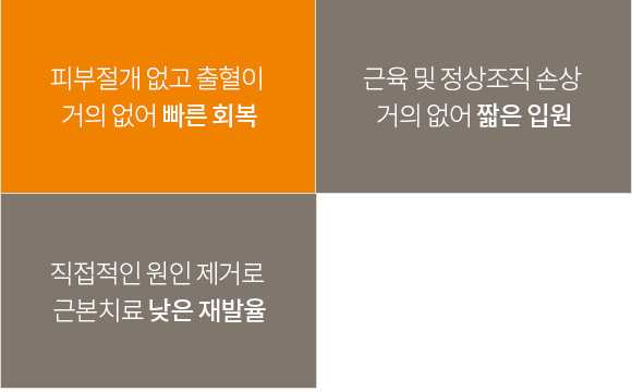 최신 수술법으로 근육 및 정상 조직 손상이 거의 없고,