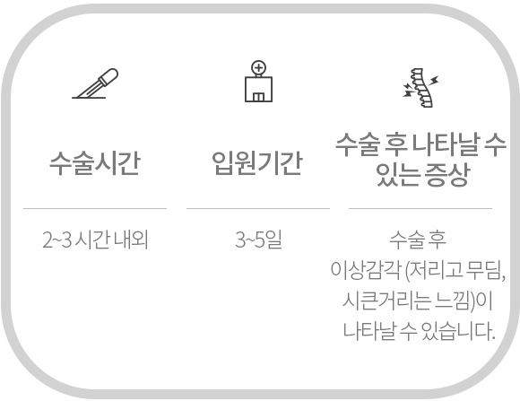 수술 후 비교적 빠른 시간 내에 통증 해결이 가능합니다.